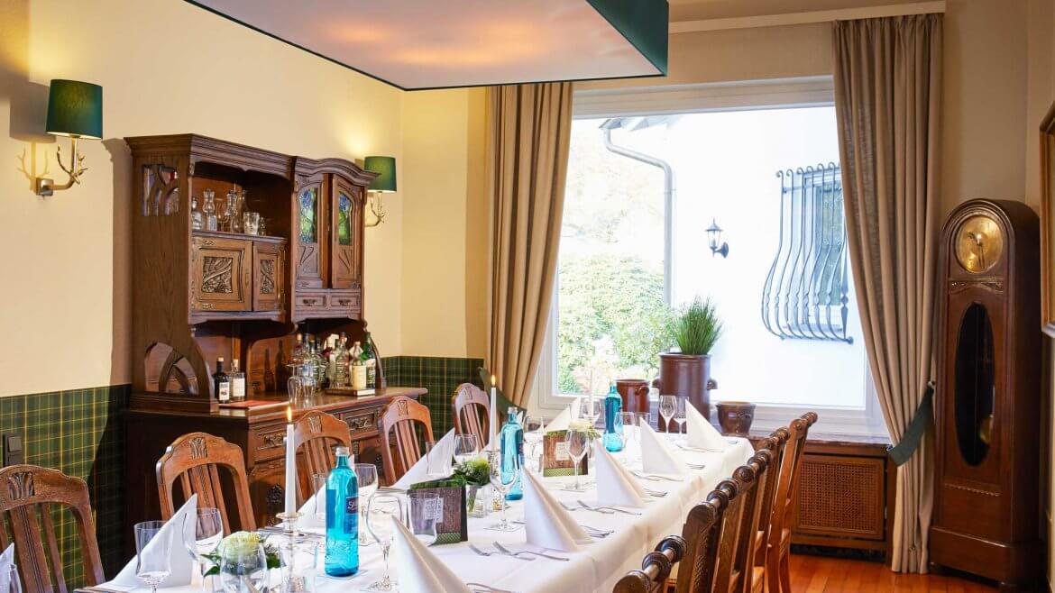 Das angrenzende Jagdzimmer mit umfangreicher Whiskyauswahl strahlt gemütlichen Charme aus.