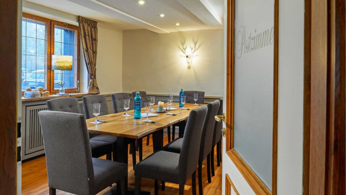 Unser frisch renoviertes Postzimmer ist perfekt für kleine Gruppen. Genießen Sie unsere HeimatKüche oder nutzen den seperaten Raum für Ihre diskrekte Versammlung/Besprechung (Leinwand und Beamer sind möglich).